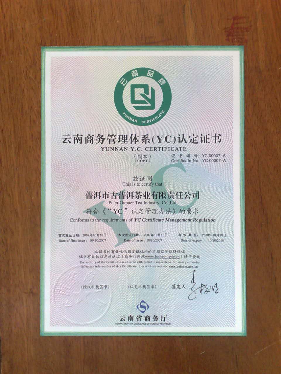 公司成立至今,在普洱、西雙版納、臨滄三大茶區(qū)中擁有生態(tài)茶園6000多畝,古樹大葉種茶3000多棵。為完善公司管理需要,2006年12月通過茶葉食品生產(chǎn)許可證A級認(rèn)證;2007年10月首次取得云南品牌YC認(rèn)證;2008年4月通過出口食品衛(wèi)生注冊認(rèn)證;2010年獲得云南省著名商標(biāo);多年來公司產(chǎn)品榮獲許多榮譽(yù)和多項資格認(rèn)證,其中最引人注目的是,公司生產(chǎn)的宮延普洱茶榮獲“2002年廣州茶博覽交易會”暨第二屆(秋季)優(yōu)質(zhì)茶評比大賽的“普洱茶王”稱號,并以100克16萬的天價拍賣成交。創(chuàng)造了中國普洱茶歷史上的第一個“茶王”稱號。同時也給云南省各族人民帶來了一張響亮了名片。